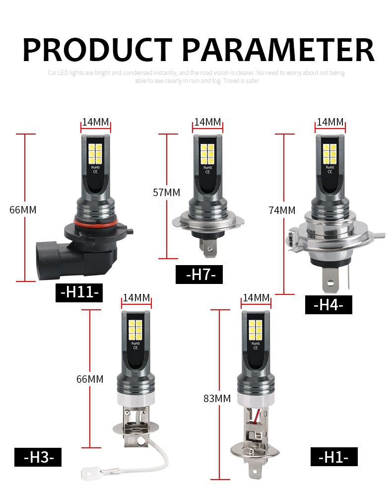 Suure valgusjõuga H4 H7 H1 H3 9006 12SMD 3030 automaatpirn 12-24v autode mootorratta led-udutuledele